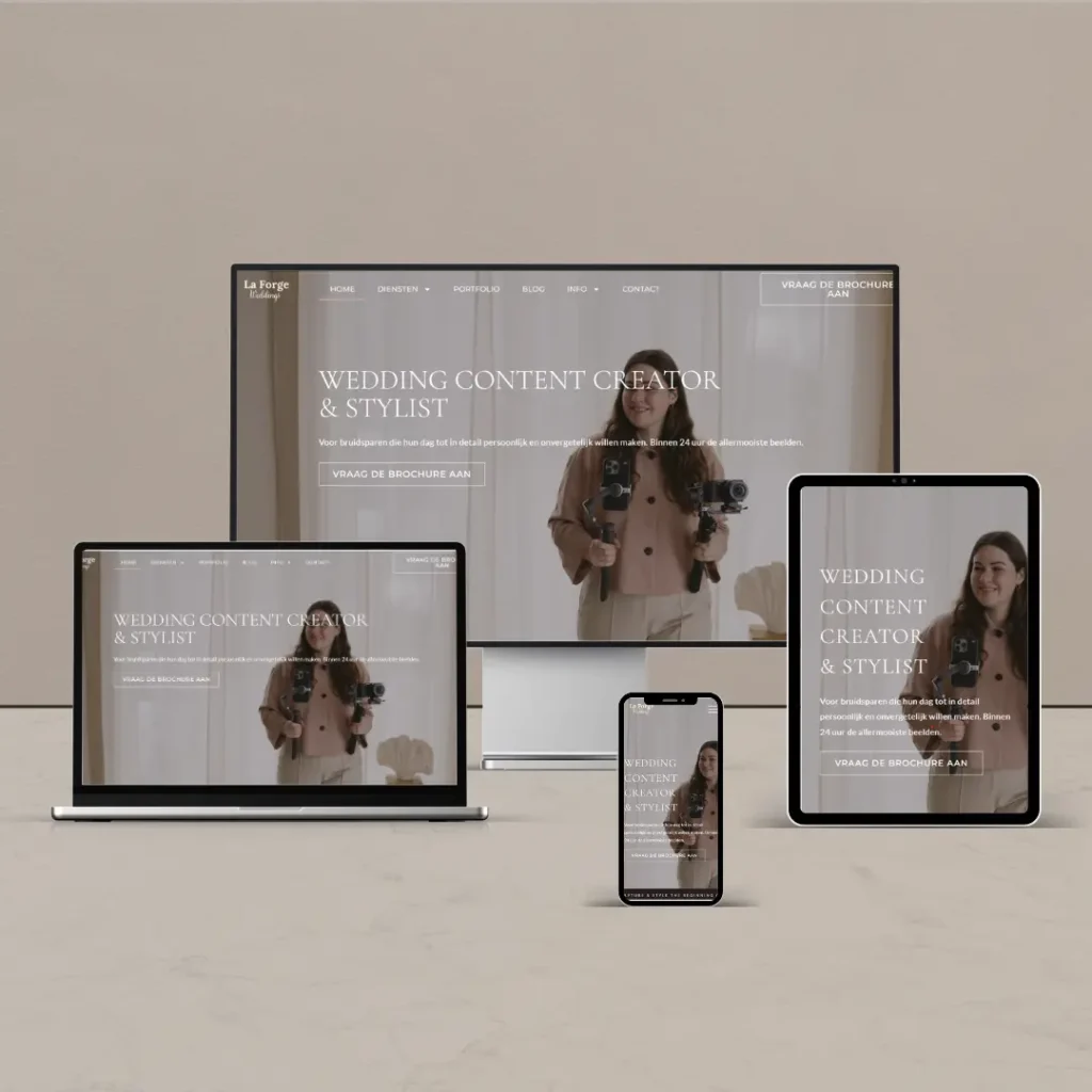 Door de heldere structuur en strategische call-to-actions vinden bruidsparen nu sneller de informatie die zij zoeken en kunnen zij eenvoudig een brochure aanvragen of direct contact opnemen. De site is geoptimaliseerd voor zoektermen rondom wedding content creator, bruiloft content en wedding styling, waardoor La Forge Weddings online beter vindbaar is én professioneel wordt gepositioneerd als specialist voor koppels die hun bruiloft persoonlijk, creatief en tot in detail vastgelegd willen hebben.